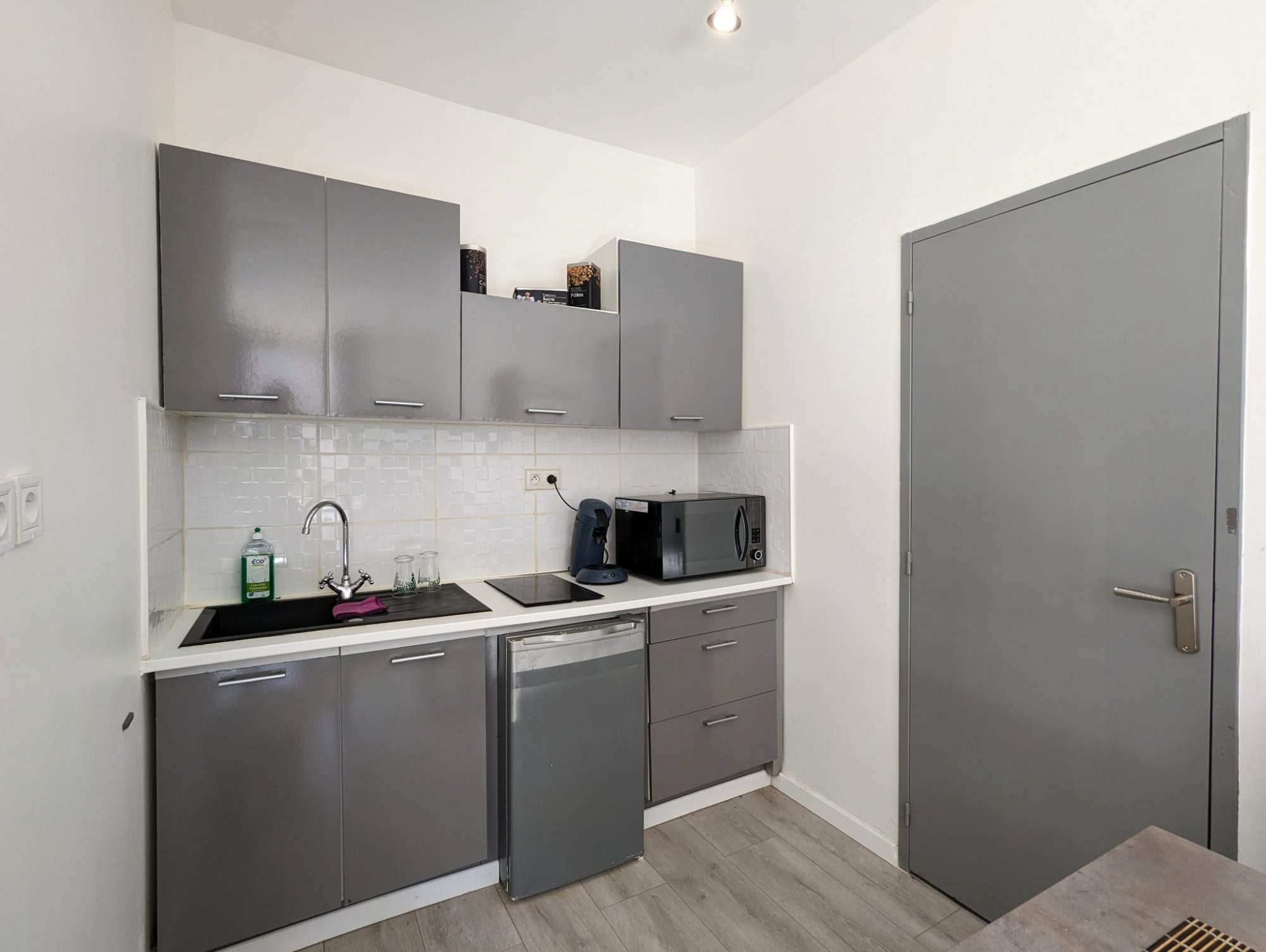 Au rez-de chaussée, on retrouve un accès avec 2 studios de 25 et 27m² chacun. Le premier est loué 400 €/ mois, le second entièrement meublé et tout équipé était jusqu’ici loué en location courte durée. Un jardin d’environ 30m² est à disposition des studios.