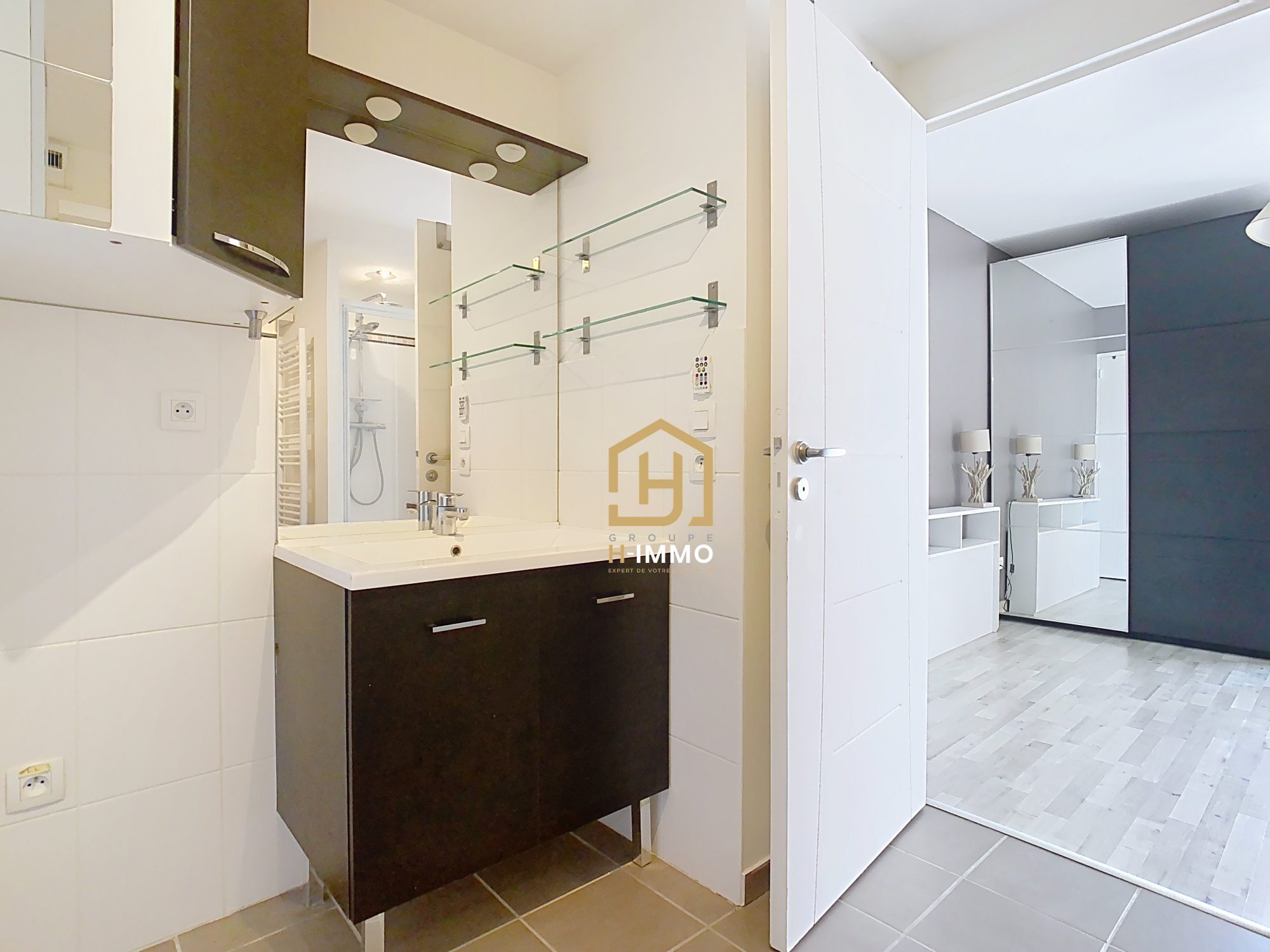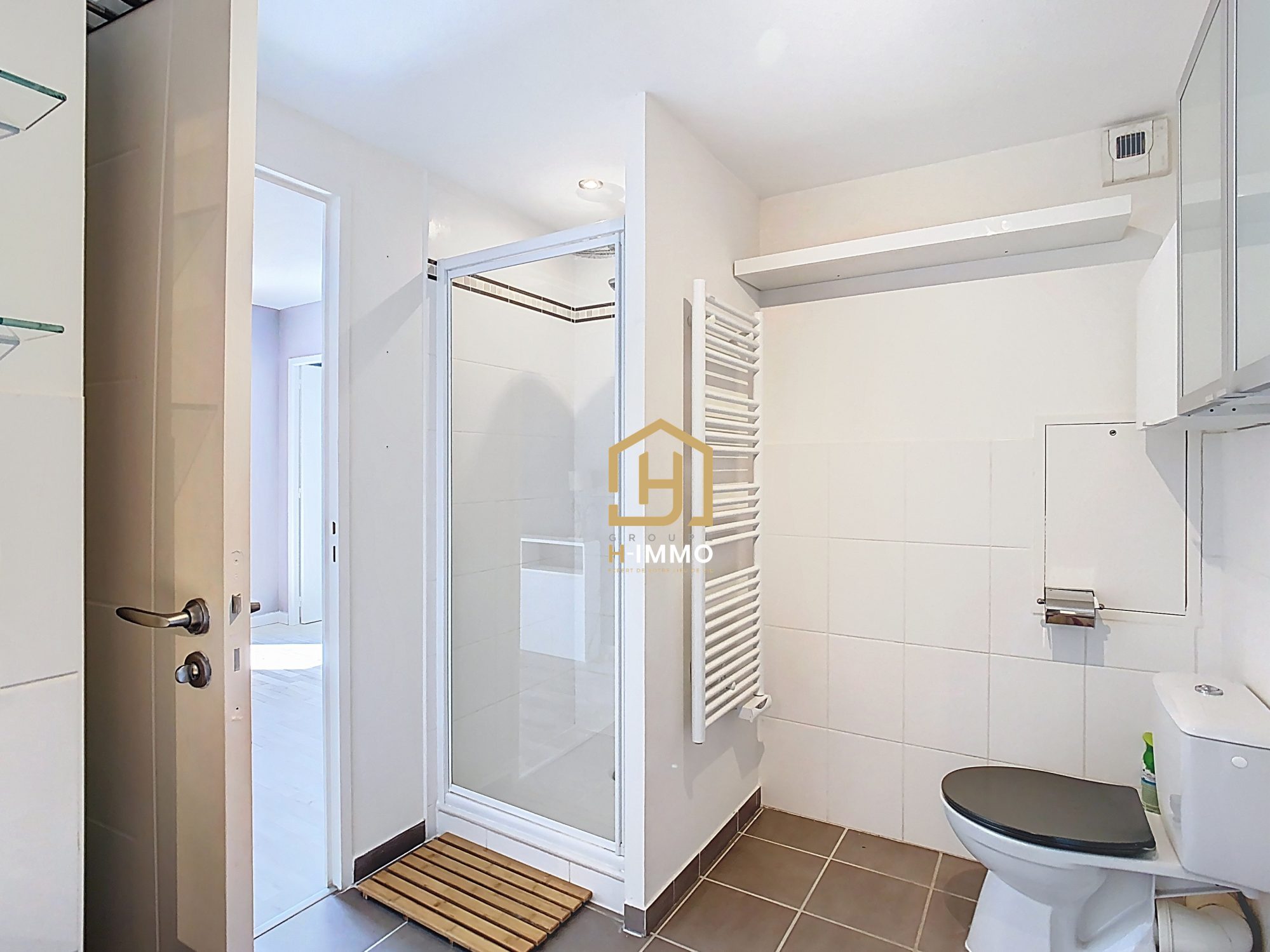 Côté nuit, vous profiterez d’une chambre spacieuse disposant de son propre accès à la terrasse par une porte-fenêtre. Elle est complétée par une grande salle de bain avec WC et cabine de douche.